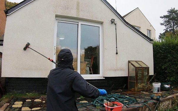 Gentle soft washing to safely remove algae, moss, and staining from render without causing damage.